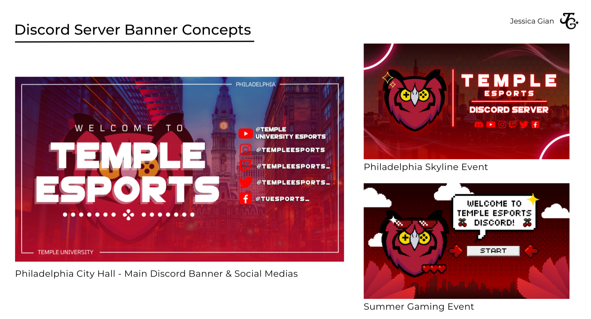 As a Graphic Designer and Content Creator for the Temple Esports Public Relations Team, I helped illustrate and concept design various icons, guidelines, and quality illustrations for Temple Esports' digital platforms, assist the PR Lead by developing and planning weekly graphics for community in-house events and meetings, and provide design advice to social media managers to improve resources and branding on public social media collegiate platformsHere are some of the graphics below: