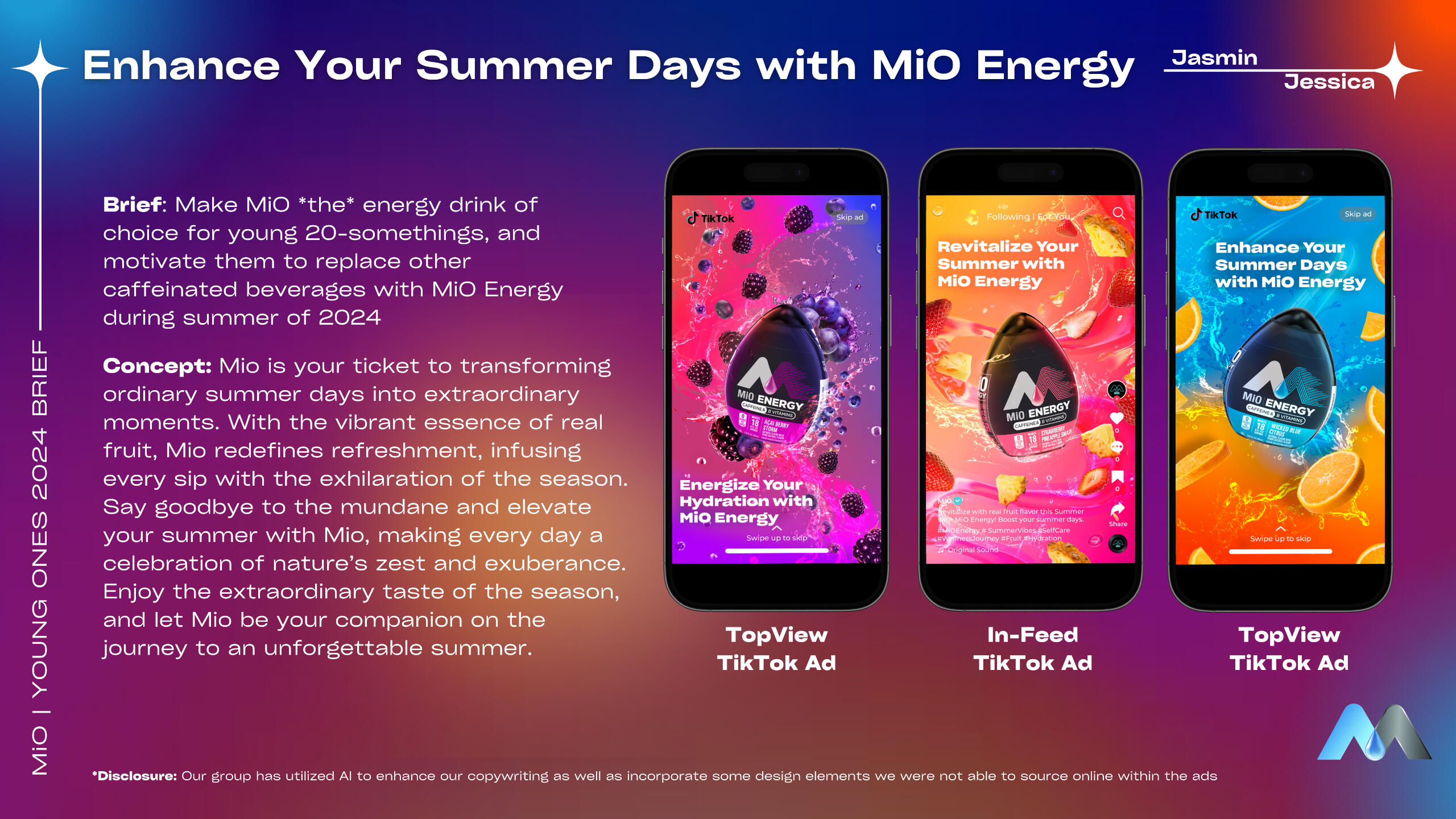 As a advertising designs student for Art Direction I: Concept & Layout at Temple University, we were assigned to develop an advertising campaign and ads for the following assignment: Make MiO the energy drink of choice for young 20-somethings, and motivate them to replace other caffeinated beverages with MiO Energy during summer of 2024.Both myself and my partner for this project was recently awarded an Honorable Mention Award from Graphis, an international publisher of books and awards for the Visual communications industry! You can find out more here: MiO Energy - Enhanced SummerYou can read more about the project below:
