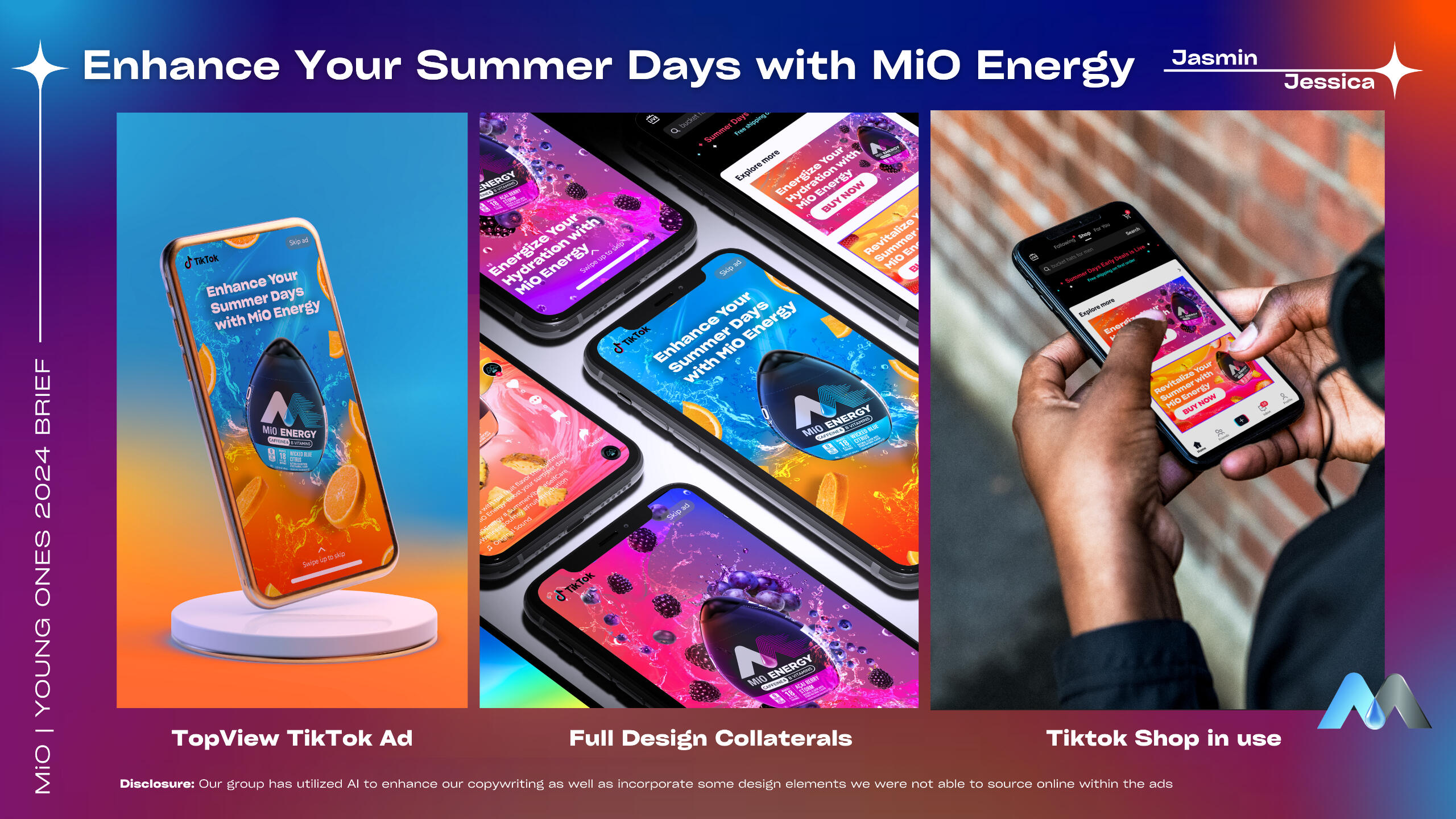 My name is Jessica Gian. I am a designer, strategist, and recent graduate from Temple University with a B.A. in Advertising and concentrations in Art Direction and Brand Strategy & Research. I am currently at SAP as a Visual Content Developer and Project Support.Through design and insights, I hope to create clean and accessible designs for everyone to use based on research and data. I also love storytelling through art, connecting people by weaving pieces of art together to create masterful/long-lasting stories.I was awarded an Honorable Mention Award from Graphis, an international publisher of books and awards for the Visual Communications industry! You can find out more here: MiO Energy - Enhanced SummerFeel free to contact me at [email protected]