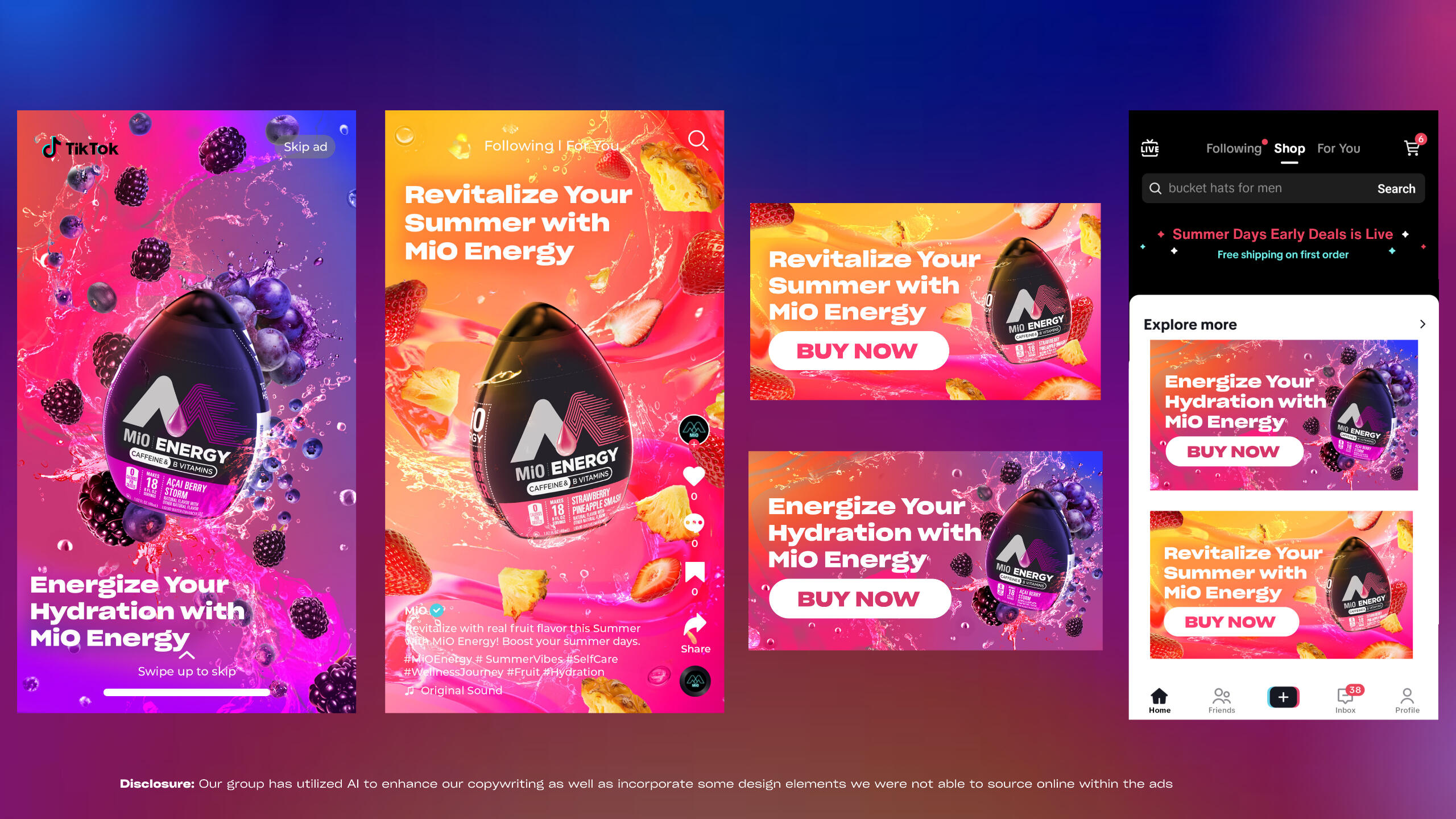 As a advertising designs student for Art Direction I: Concept & Layout at Temple University, we were assigned to develop an advertising campaign and ads for the following assignment: Make MiO the energy drink of choice for young 20-somethings, and motivate them to replace other caffeinated beverages with MiO Energy during summer of 2024.Both myself and my partner for this project was recently awarded an Honorable Mention Award from Graphis, an international publisher of books and awards for the Visual communications industry! You can find out more here: MiO Energy - Enhanced SummerYou can read more about the project below: